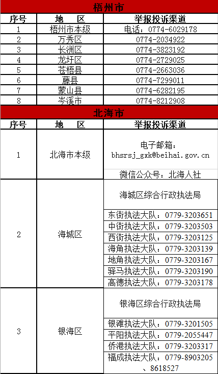 广西壮族自治区劳动保障监察机构举报投诉渠道