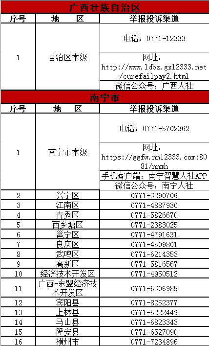 广西壮族自治区劳动保障监察机构举报投诉渠道