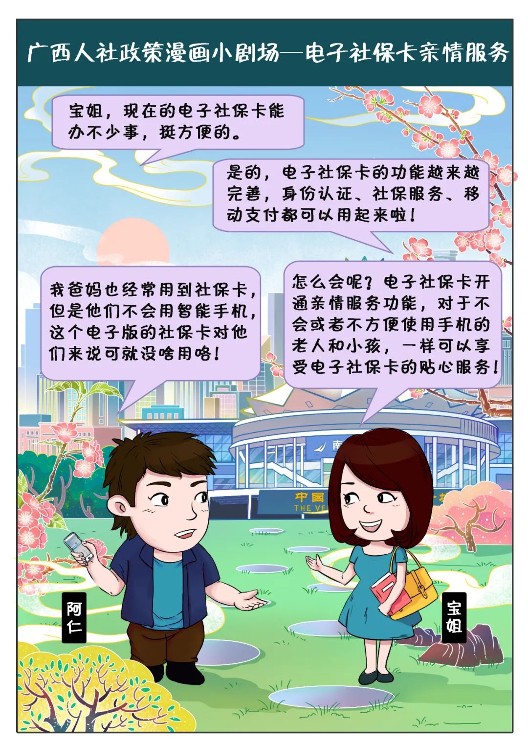 【政策漫画】广西人社政策漫画小剧场——电子社保卡亲情服务