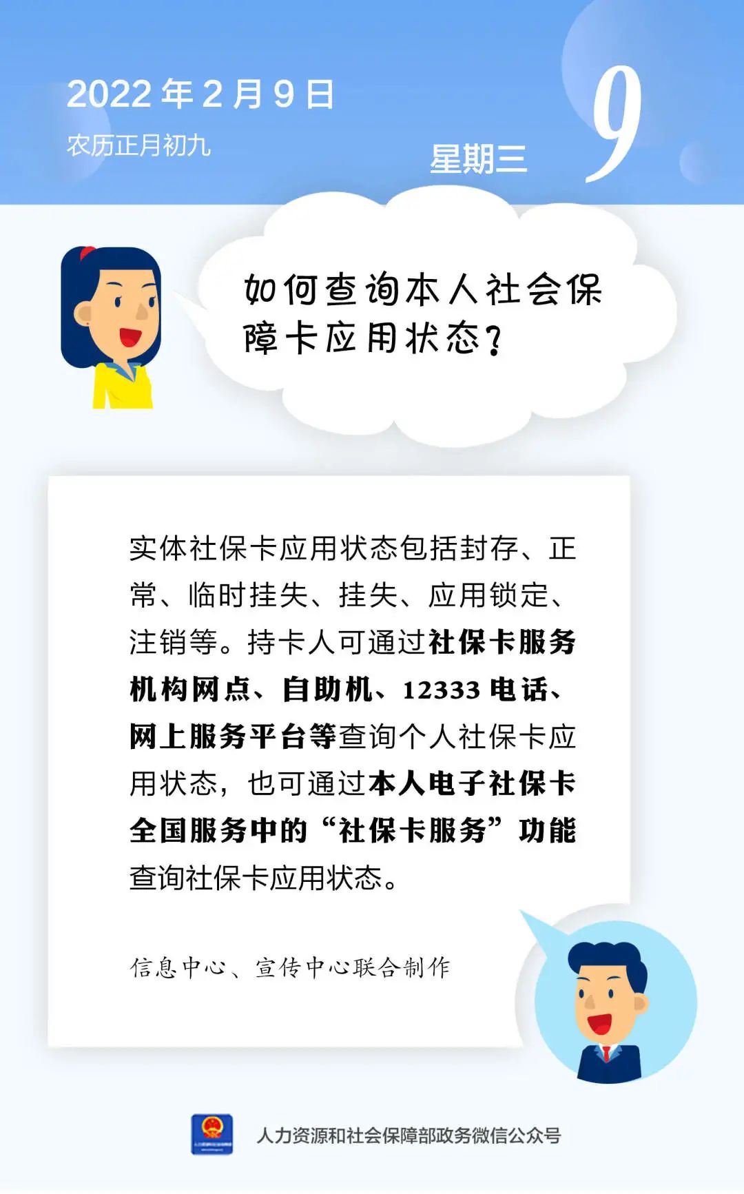 【人社日课·说卡】2月9日 如何查询本人社会保障卡应用状态?