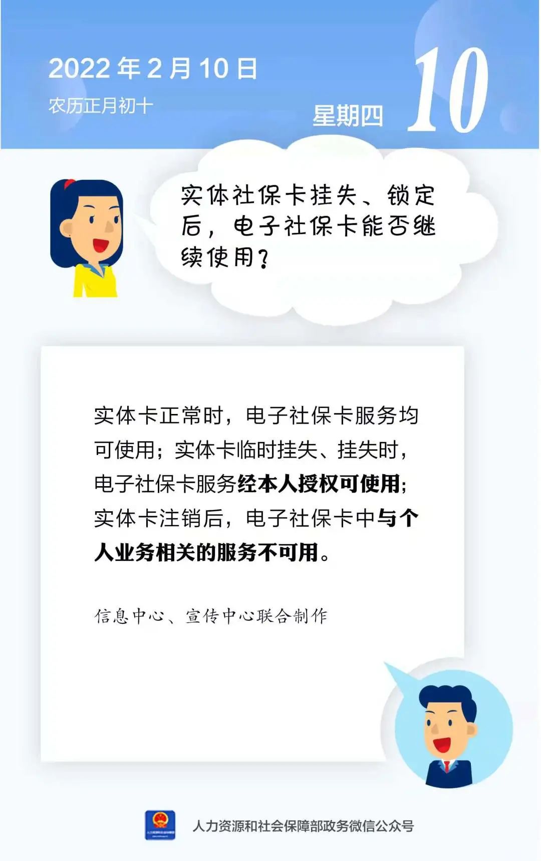 【人社日课·说卡】2月10日 实体社保卡挂失、锁定后,电子社保卡能否继续使用?