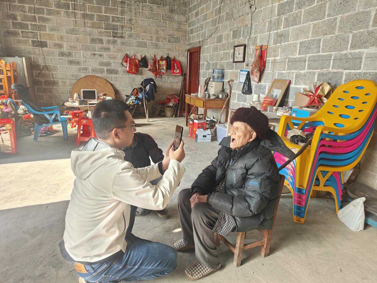 在花香乡干来村拉尔屯为105岁的谭世陆完成养老待遇资格认证