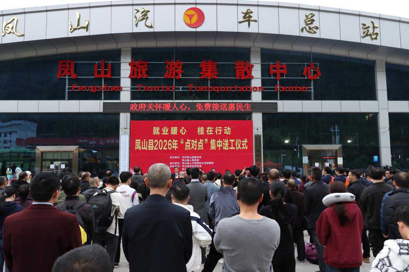 新春伊始,万象更新,春风送暖,就业护航。近日,凤山县在汽车总站举行2026年“点对点”集中送工仪式,县人社局、县总工会等相关部门为即将踏上外出务工征程的乡亲们暖心送行。“出家门、上车门、进厂门”全链条无缝对接服务,让务工人员带着期盼、载着希望奔赴各地就业岗位,为新一年增收致富、助推县域经济高质量发展按下“快进键”。