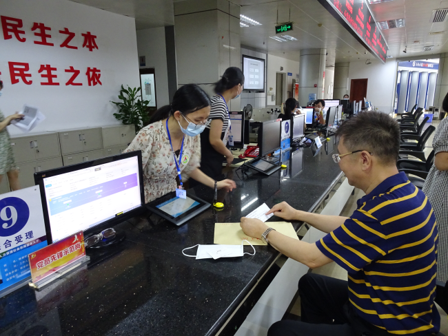 6月21日上午,玉林市人力资源和社会保障局局长程华安来到玉林市人力资源社会保障服务大厅开展“局长走流程”活动,体验“社会保险断缴补缴申报”业务,从咨询取号、查询、受理、办理、反馈等全链条流程。在等待审核复核的过程中,程华安认真细致地了解该项业务的办理步骤,并对办理流程中审核、缴费、结果反馈等步骤涉及多个业务部门(单位),致使办理环节多、时限长的实际情况提出完善意见和建议,提出社保经办部门要及时与用人单位、税务部门等相关部门进行沟通,从便民的角度考虑尽量减少办理环节、缩短办事时间,进一步优化办事流程。
