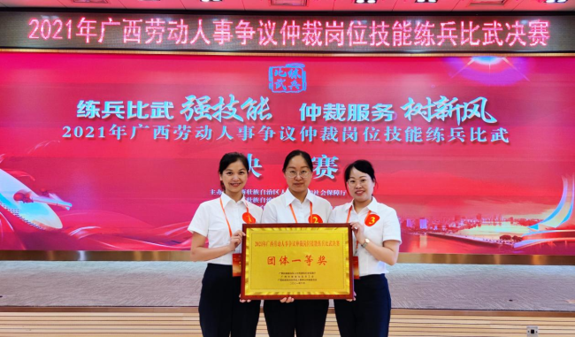 柳州市派出柳州市仲裁院仲裁庭庭长牛娟娟、仲裁员刘莹,鹿寨县仲裁院院长覃永凤组成代表队参赛。经过激烈角逐,柳州市代表队勇夺“团体一等奖”,鹿寨县仲裁院院长覃永凤同志荣获“个人一等奖”,充分彰显柳州市代表队默契的团队协作精神、超强的随机应变能力、扎实的理论知识基础和高超的业务操作技能。