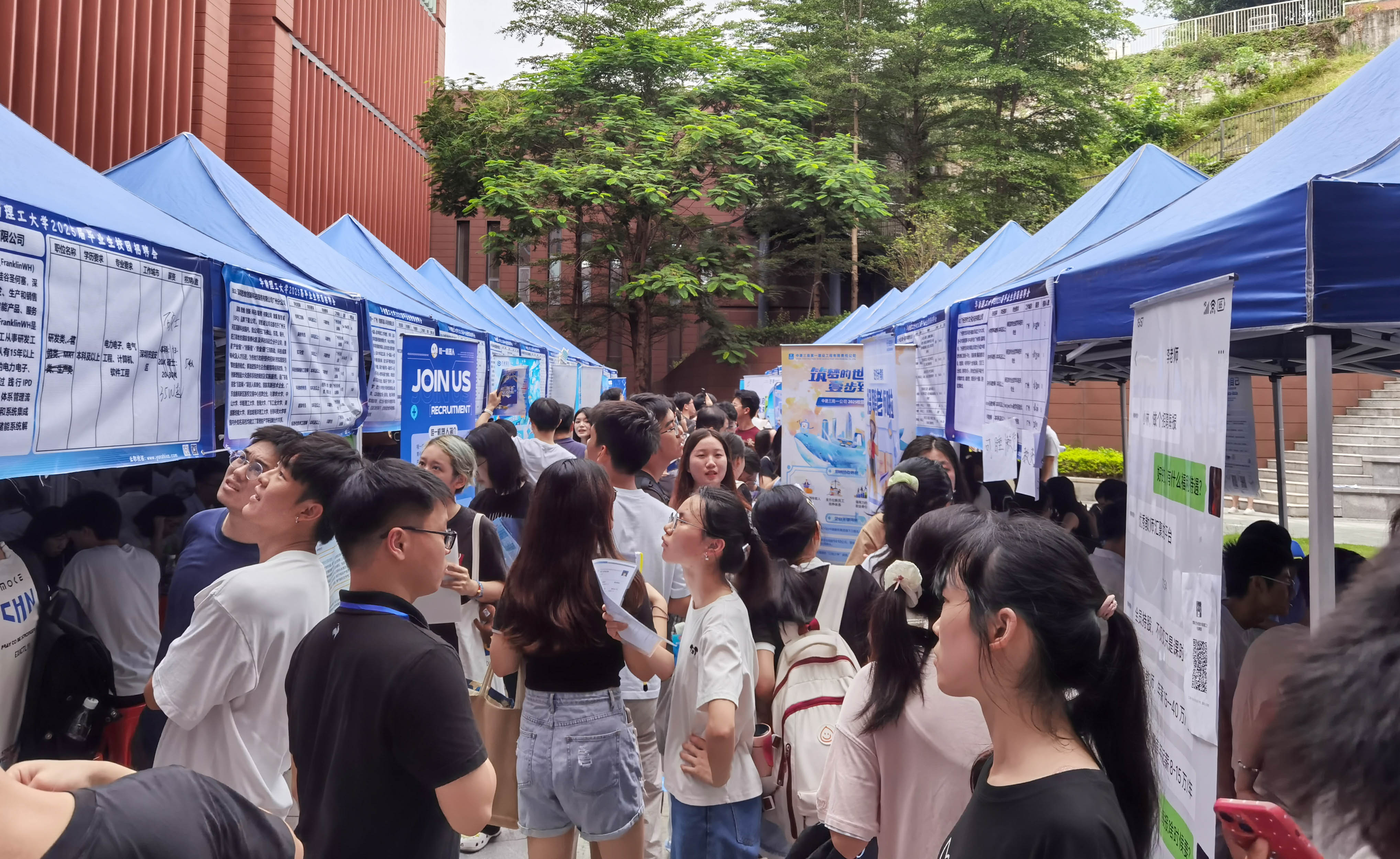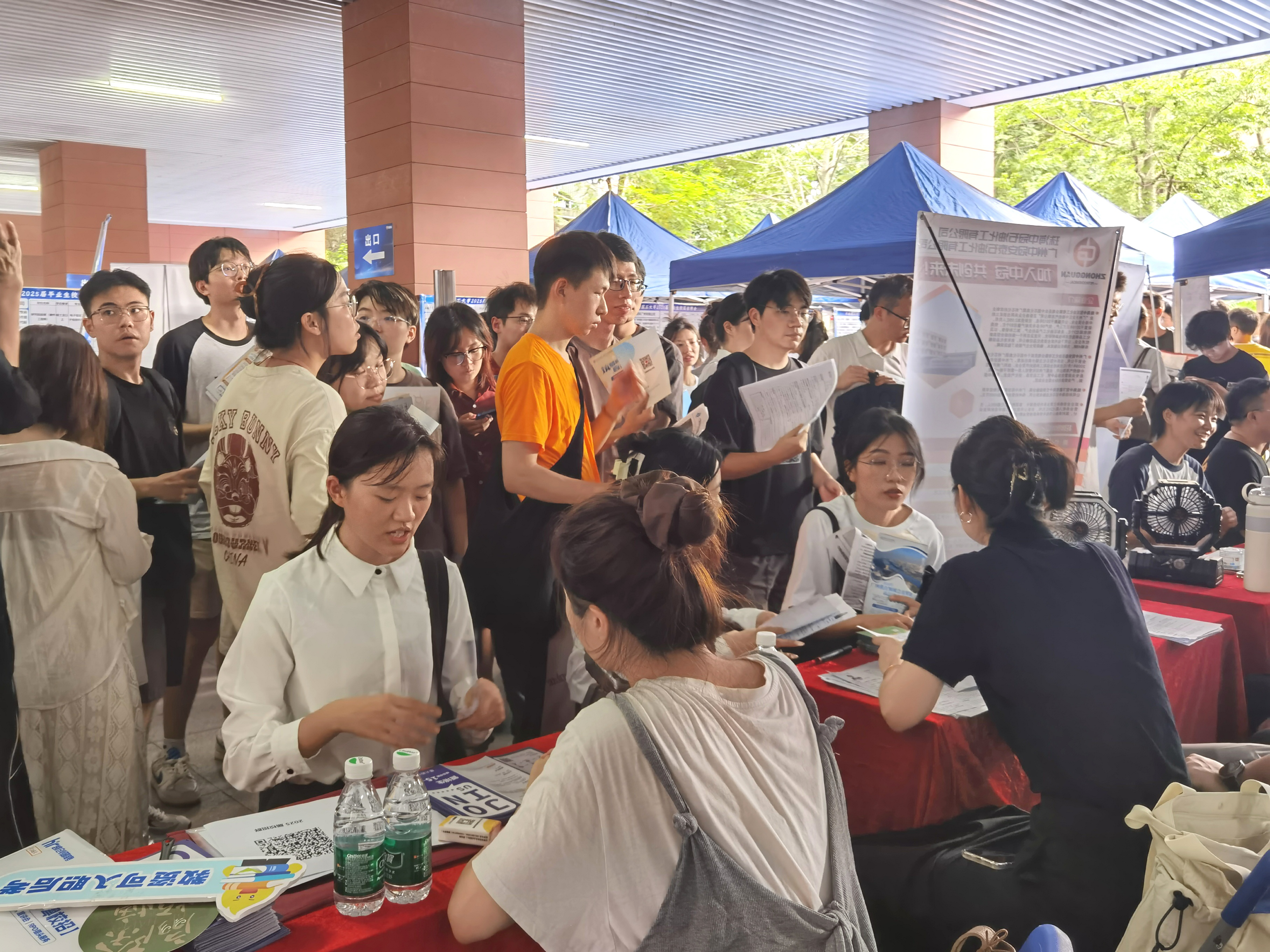 招聘当天,求职者的热情也如同天气般火热,招聘会还未开始,就已经有不少学生拿着简历在入口处等候。招聘会开始后,现场摩肩接踵、气氛热烈,许多用人单位展位前排起长队。