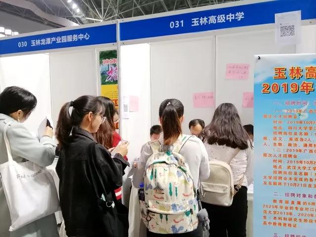 一早,玉林高中展位前就排起了长龙。来自东北师范大学思想政治教育专业的小吴和同学千里迢迢、不辞劳苦,从长春辗转来到成都应聘玉林高中。小吴是广西玉林人,所以她关注、心仪玉林高中已久。“名震八桂!”谈及应聘初衷,小吴如是回答。