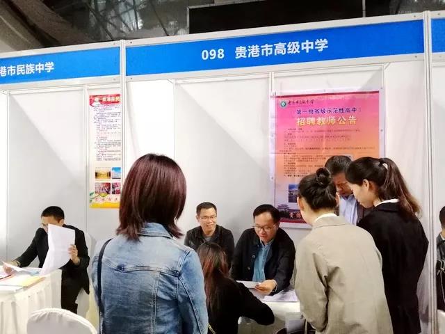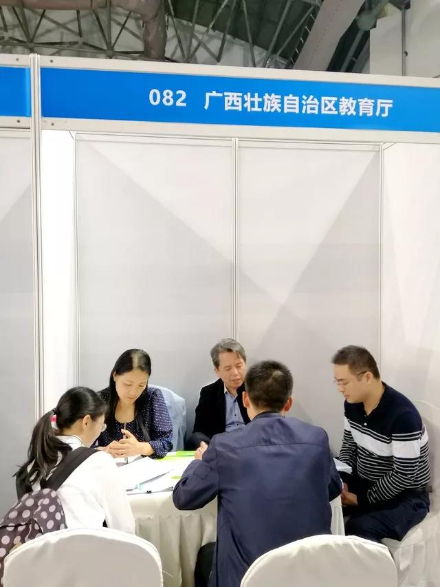 与玉林高中一样,贵港高中展位前的应聘者也络绎不绝。学校“不打无准备之仗”,提前将招聘公告发布到各重点院校,10月17日,还派了2名老师到西南大学进行宣讲、招聘。学校教务处主任梁勤老师介绍,该校计划招聘30人,前来应聘的毕业生有40-50人,学校当天就组织试讲。“我们是带着公章来的,可以现场签约。”