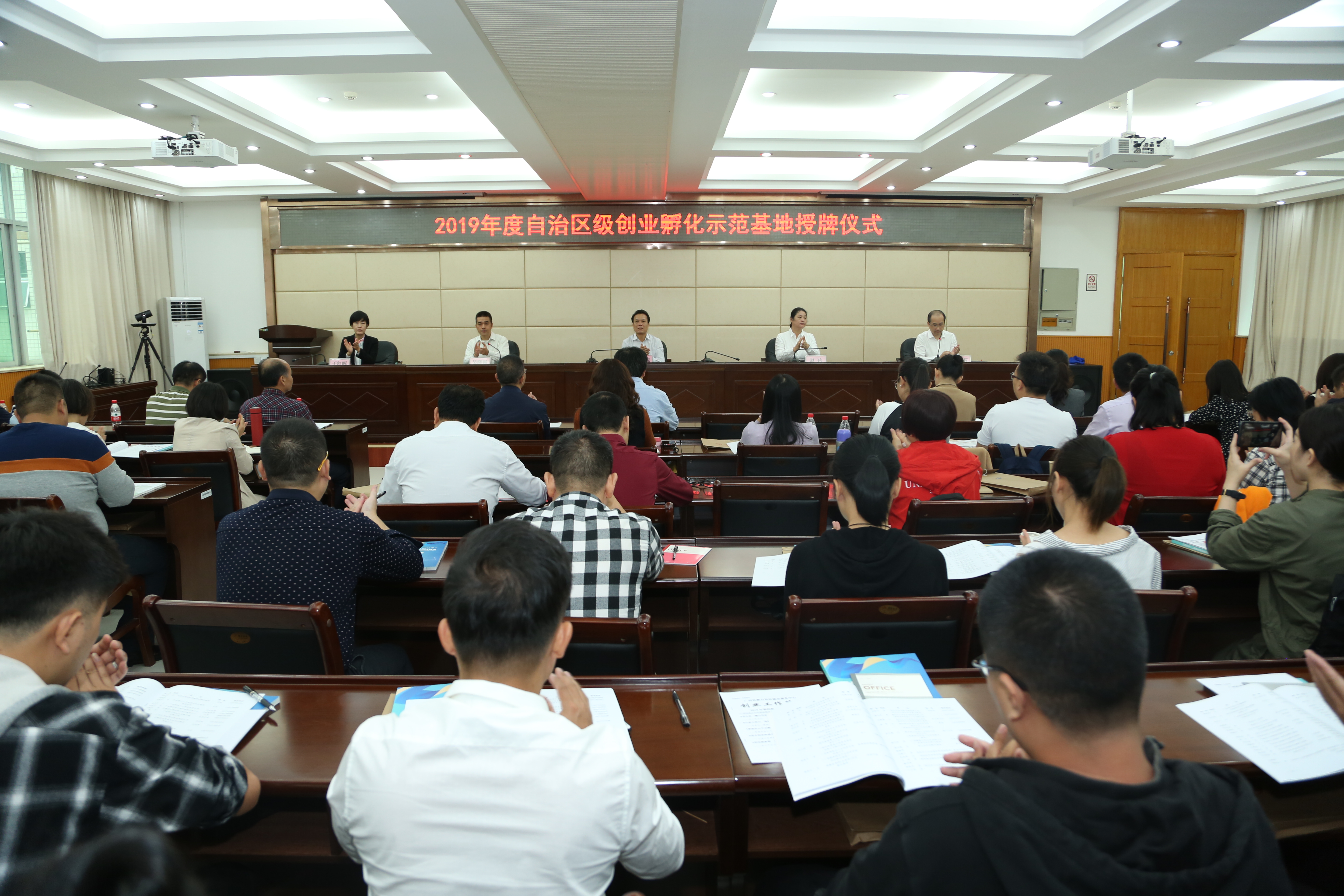 授牌仪式上,7个自治区级创业孵化示范基地分别做经验介绍,自治区人力资源社会保障厅相关业务处室解读创业就业政策,演示并讲解如何正确使用广西壮族自治区数字人社经办管理信息系统创业管理和创业服务模块。