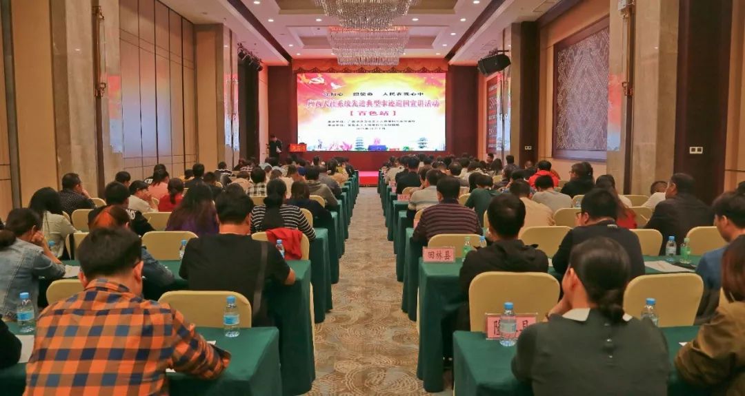 168名来自百色市人力资源和社会保障局及百色市各县(区、市)人力资源社会保障系统的干部职工在现场共同聆听了先进典型人物的感人事迹。