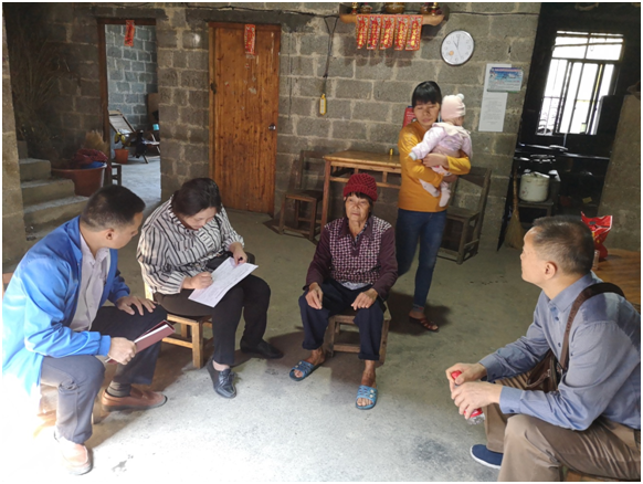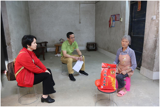 11月7日上午,自治区人才服务中心直属支部党员干部、部分企业职工早早来到了林圩镇东庄村黄全屯、三元屯,在驻村干部的陪同下,带上慰问品,分别走访了11户贫困户。党员干部与帮扶对象一对一促膝交谈,嘘寒问暖,详细了解家庭人员、身体健康、经济收入、住房用水用电等生产生活情况,以及目前所面临的困难等问题。党员干部认真填写帮扶手册,针对贫困户不同的致贫原因,向他们积极宣传讲解国家精准扶贫的好政策,希望借助国家政策的有力支持和亲切的关心,鼓励其坚定脱贫致富的信心和决心,积极面对困难,早日脱贫。