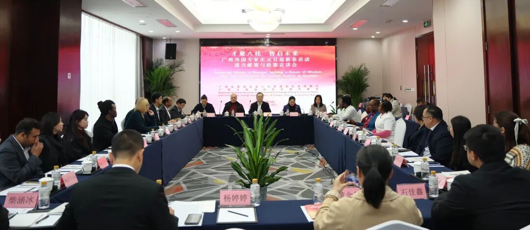 建言献策与政策宣讲会上,覃朝俊寄语外国专家当好壮美广西建设者、中华文化传播者、国际合作促进者,在重点领域创新实干,讲好广西故事,搭建合作桥梁,共筑人类命运共同体。外国专家立足国际视野,围绕广西发展改革与“十五五”规划,聚焦产业升级、科技创新、对外合作等重点领域各抒己见。在政策宣讲环节,自治区人力资源社会保障厅(自治区外国专家局)、自治区公安厅出入境管理局相关部门负责同志现场解读外籍人才在桂工作许可、生活便利、停居留服务等最新政策,通过面对面答疑解惑,为外籍人才在桂安居乐业提供精准指引与务实保障,切实传递广西对外国人才的重视与关怀。