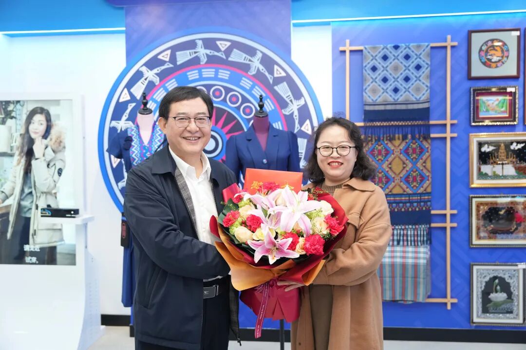 厅党组成员、副厅长覃朝俊(左一)慰问2022年度广西“金绣球友谊奖”获得者、广西财经学院国际教育学院副院长、泰国籍专家文婷