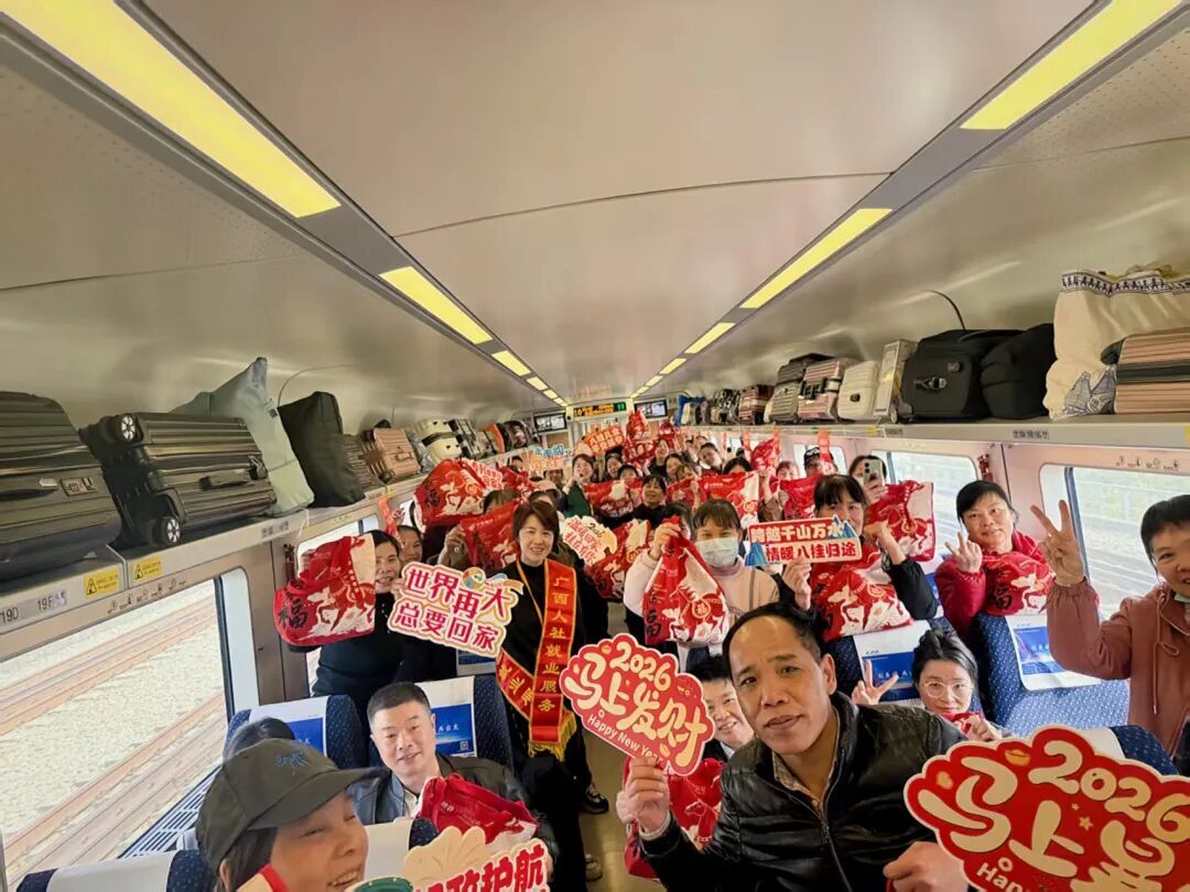 2026年2月10日,自治区人力资源社会保障厅联合自治区总工会、自治区人民政府驻北京办事处、自治区人民政府驻广州办事处等单位共同举办的2026年春节广西籍在京津冀、在粤务工人员平安返乡“温暖回家路”活动启动。