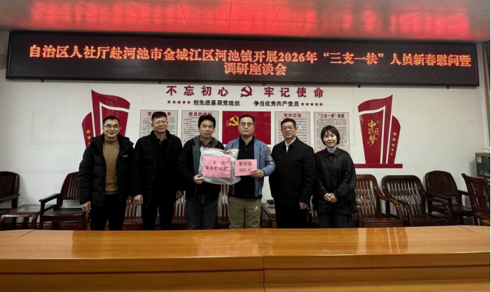 为贯彻落实国家引导高校毕业生服务基层的决策部署,持续提升“三支一扶”计划的实施效能,2026年春节前夕,自治区人力资源社会保障厅组织3支慰问调研组,分赴南宁、钦州、玉林、河池等地开展“三支一扶”新春慰问调研活动。