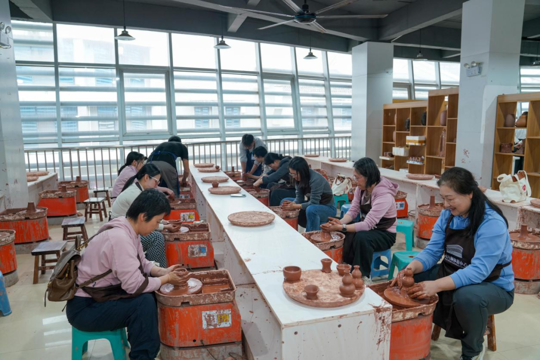 随后,参加活动的女干部职工来到坭兴陶体验中心,参观坭兴陶六堡茶劳模工匠联盟创新成果展,了解六堡茶、坭兴陶融合发展新模式和六堡茶、坭兴陶劳模工匠联盟创新合作取得的丰硕成果,并现场体验了雕刻、拉坯等制作技艺,近距离感受坭兴陶的独特魅力。