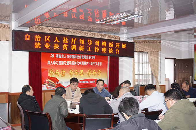 黄学军在调研过程中肯定了各县(市)的工作及取得的成绩,强调市县人社部门要高度重视中央巡视组对广西脱贫攻坚专项巡视反馈问题的整改工作,提高政治站位,主动对照认领,坚持立整立改,细化整改措施,务求取得实效。黄学军指出,就业是最大的民生,党中央、国务院、自治区党委政府都高度重视就业工作,广西是全国脱贫攻坚主战场之一,全区各级人社部门要提高政治站位、勇于担当作为,无论任务多么繁重,都要以攻坚克难、攻城拔寨的勇气、信心和决心,推动就业和人社扶贫工作目标的全面完成,为打赢脱贫攻坚做出新的贡献。黄学军强调,要把就业扶贫摆在突出位置,加强就业公共服务,提高劳务输出组织化程度,组织好群众节后外出务工。按照自治区建设就业扶贫车间和开发公益性岗位的部署要求,结合本地实际,因地制宜地建设就业扶贫车间,结合经济发展、乡村振兴、生态保护等,开发更多的公益性岗位,帮助就业困难群体实现就地就近就业。按照“千村万企”部署,坚持就业导向,坚持政府主导,积极探索创新职业技能培训方式,提高培训针对性、有效性,帮助更多群众掌握一技之长,促进群众就业创业。村级就业社保公共服务平台是人社工作服务群众的“前沿阵地”,目前已不能满足工作发展需要,今年将全面改造提升,全面提高“六有”标准,做到场所改善、经费保障、网络畅通、人员专业、工作规范、服务优化。