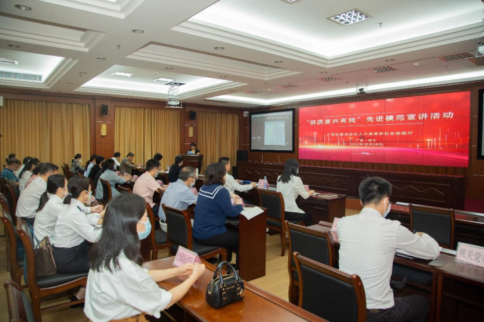 为进一步动员和激励广西人社各级党组织和广大党员干部职工深入学习领会党的二十大精神的实质和丰富内涵,优化人社系统行风建设,加快推进人社各项事业发展,10月28日,自治区人力资源社会保障厅在南宁举办“强国复兴有我”先进模范宣讲活动。自治区人力资源社会保障厅二级巡视员江群萍出席活动并致辞。