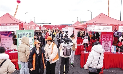 2025年广西“就业暖心·桂在行动”专项服务活动暨重点产业园区用工服务专项行动举行,图为南宁市片区专场招聘会现场。