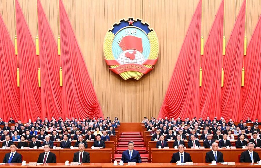 三月的北京,春启华章。人民大会堂大礼堂灯光璀璨,气氛隆重热烈。中国人民政治协商会议会徽悬挂在主席台正中,十面鲜艳的红旗分列两侧。