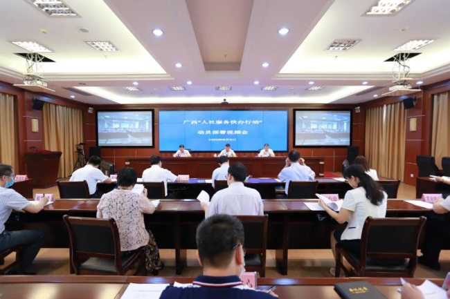 6月9日上午,广西壮族自治区人力资源和社会保障厅组织召开全区“人社服务快办行动”动员部署视频会。召开会议主要为了深入贯彻落实全国、全区深化“放管服”改革、优化营商环境的决策部署,落实全国人社系统行风建设会议精神,进一步凝聚共识,提高认识,加快全区“人社服务快办行动”步伐。会议主要传达学习人力资源社会保障部《关于开展“人社服务快办行动”的通知》精神,全面动员部署广西“人社服务快办行动”,加速推动广西人社领域服务“清事项、减材料、压时限”工作,努力为企业和人民群众提供更加优质便捷高效的服务。
