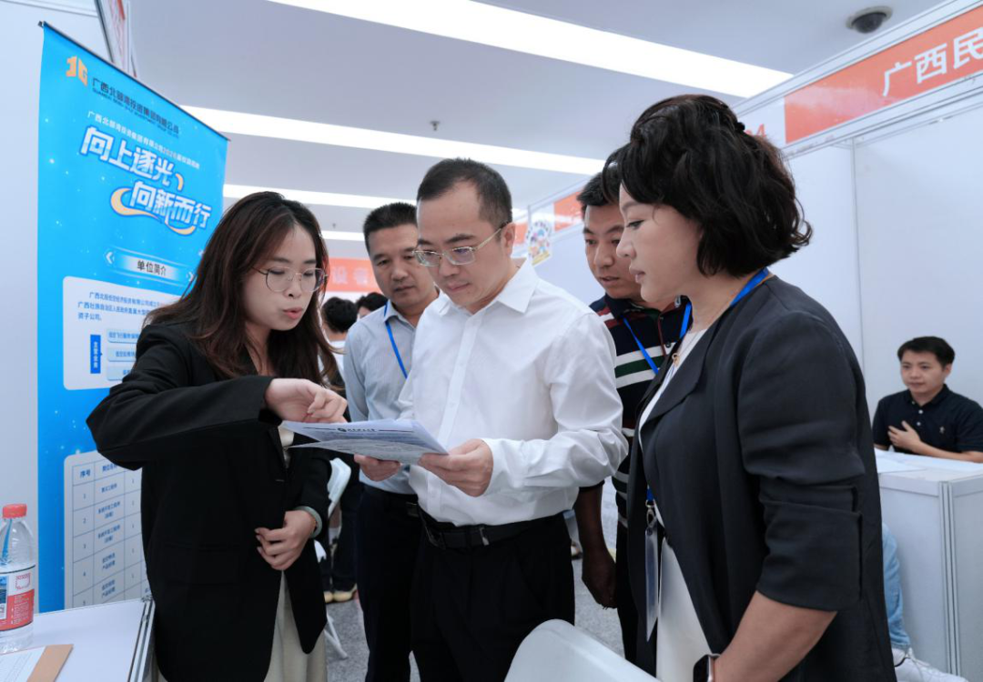从事金融科技研究的硕士李萌,则被国海证券的“金融科技 + 东盟市场”业务布局打动:“广西对接东盟的区位优势独特,能把金融科技和跨境业务结合起来,对我来说是难得的成长机会。”现场,像王浩、李萌这样瞄准广西发展潜力的求职者不在少数,最终414人次达成初步录用意向,其中硕博人才占比96%,涵盖教育、信息技术、金融等多个领域。