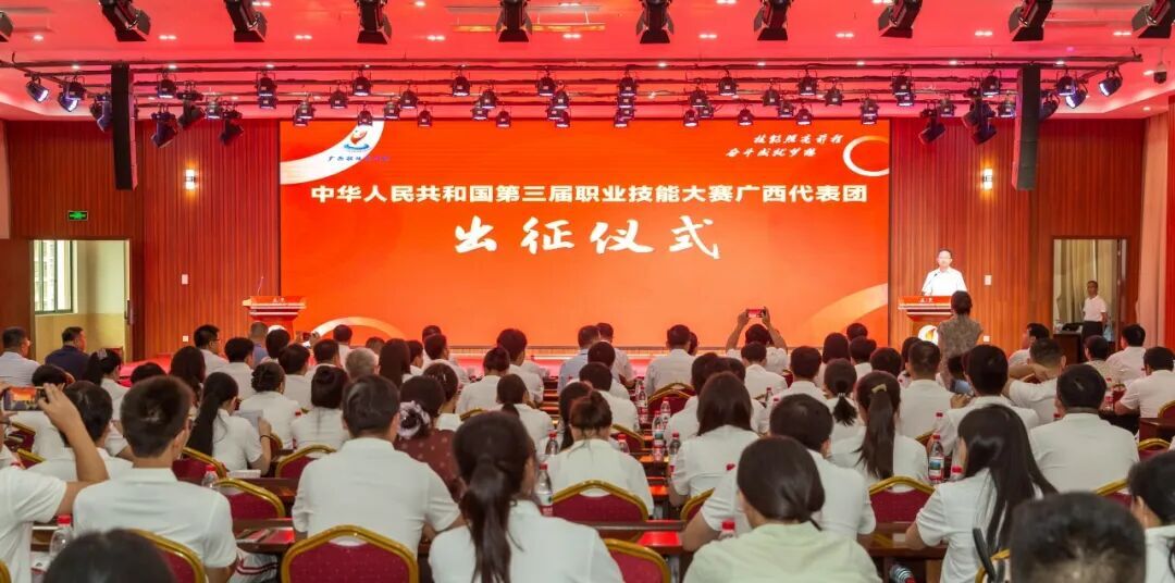 广西代表团全体选手、裁判员、工作人员、选手所在单位相关领导嘉宾、技术指导教练共250人参加出征仪式。