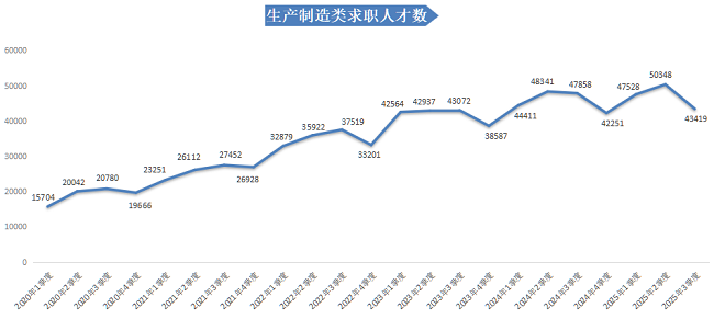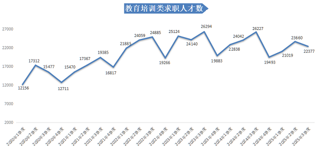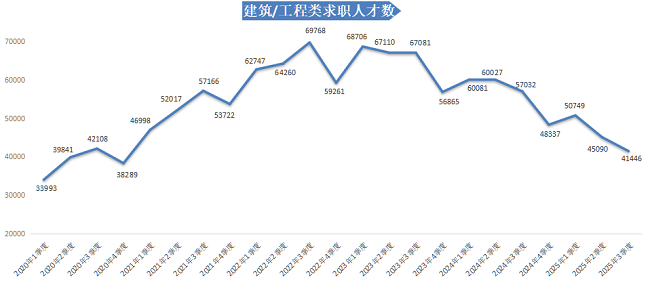 2025年第三季度,广西人才网人才供应量呈现“同比、环比双下滑”的态势。本季度求职人才数为415187人,与上年同期的477104人相比减少61917人,同比下滑12.98% ,环比下滑10.63%。