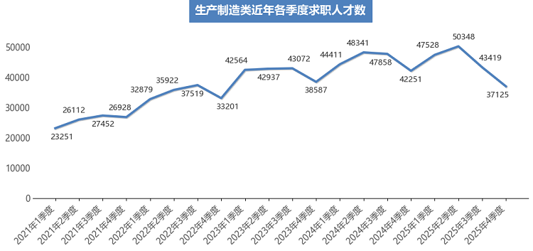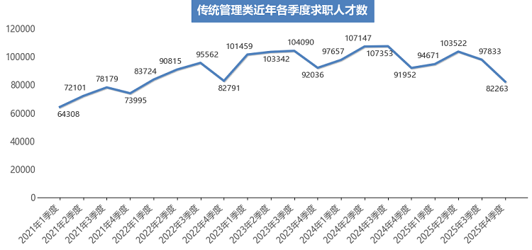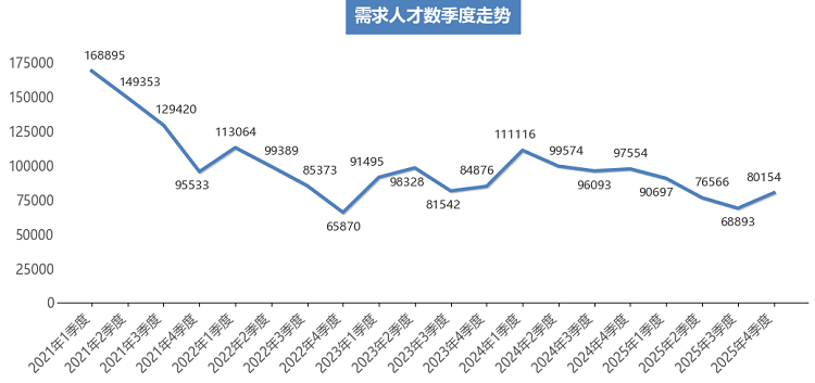 广西人才网供求数据显示,2025年第四季度需求人才数为80154人,同比下滑17.84%;求职人才数为345450人,同比下滑14.55%;总人才供求比为4.31(即人才需求人数或职位数为1时,人才供给或求职人才数为4.31,下同),比上年同期的4.14增加0.17。