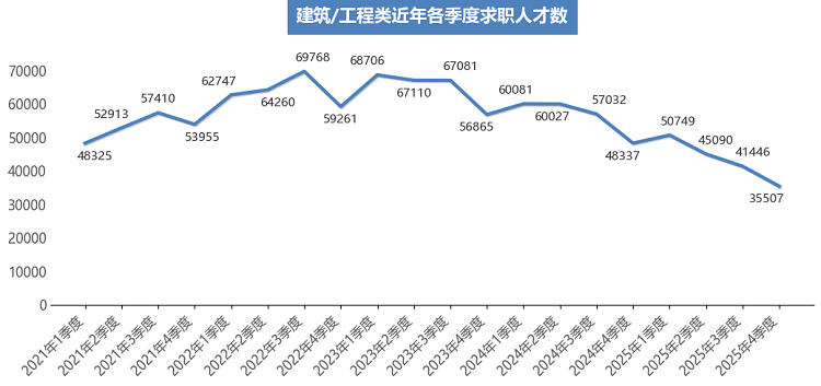 2025年第四季度,广西人才网中求职人才数为345450人,与上年同期的404281人相比减少58831人,同比下滑14.55%,与上季度相比减少69737人,环比下滑16.80%。