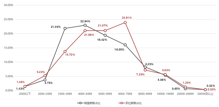 (四)求职者期望薪酬与职位薪酬区间分布差异较显著