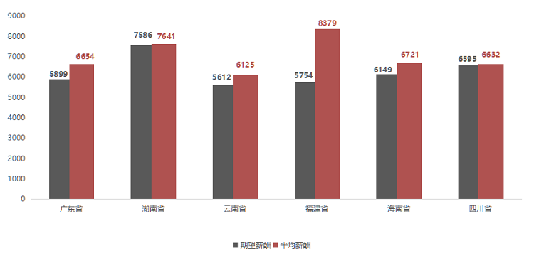 注4:职位平均薪酬指的是所属职位类别中用人单位发布职位的薪酬样本加权平均值,不代表单个职位的实际薪酬,例如高级管理类职位平均薪酬为10798元/月,但其有很多副总以上级别的高薪职位薪酬更高。期望薪酬指的是求职者期望从事职位类别的薪酬样本加权平均值。