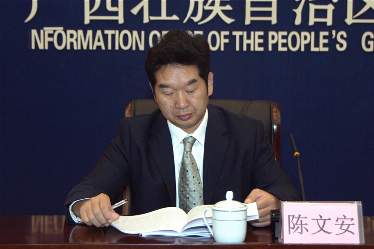 (图:自治区人力资源社会保障厅农民工工作处处长陈文安回答记者提问)
