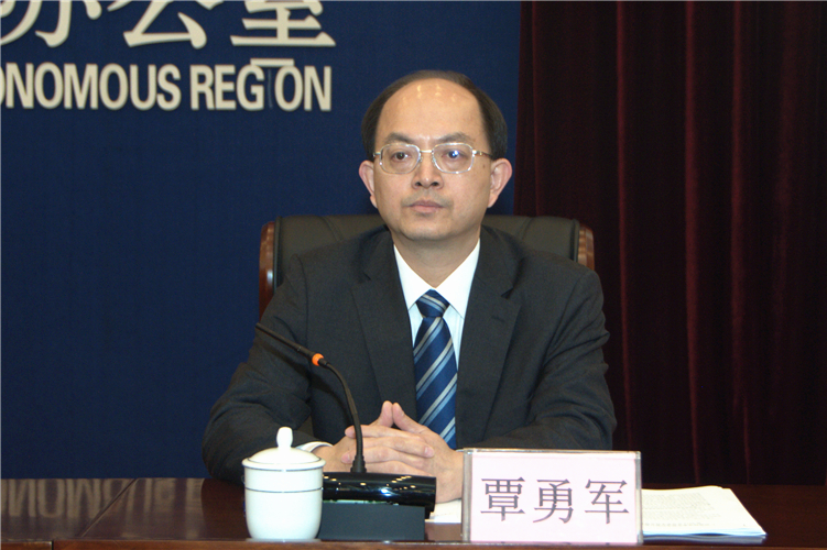 (图:自治区人才服务办公室主任覃勇军回答记者提问)