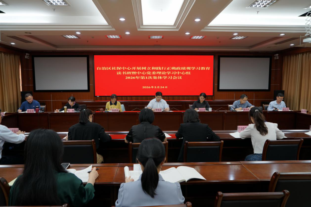 近日,自治区社保中心党委开展树立和践行正确政绩观学习教育读书班暨中心党委理论学习中心组2026年第1次集体学习集中研讨,深入学习贯彻习近平总书记关于树立和践行正确政绩观的重要论述,认真贯彻落实习近平总书记关于广西工作论述的重要要求,围绕“政绩为谁而树、树什么样的政绩、靠什么树政绩”主题,深入开展学习研讨。中心党委书记、主任罗俊鑫主持会议并讲话。