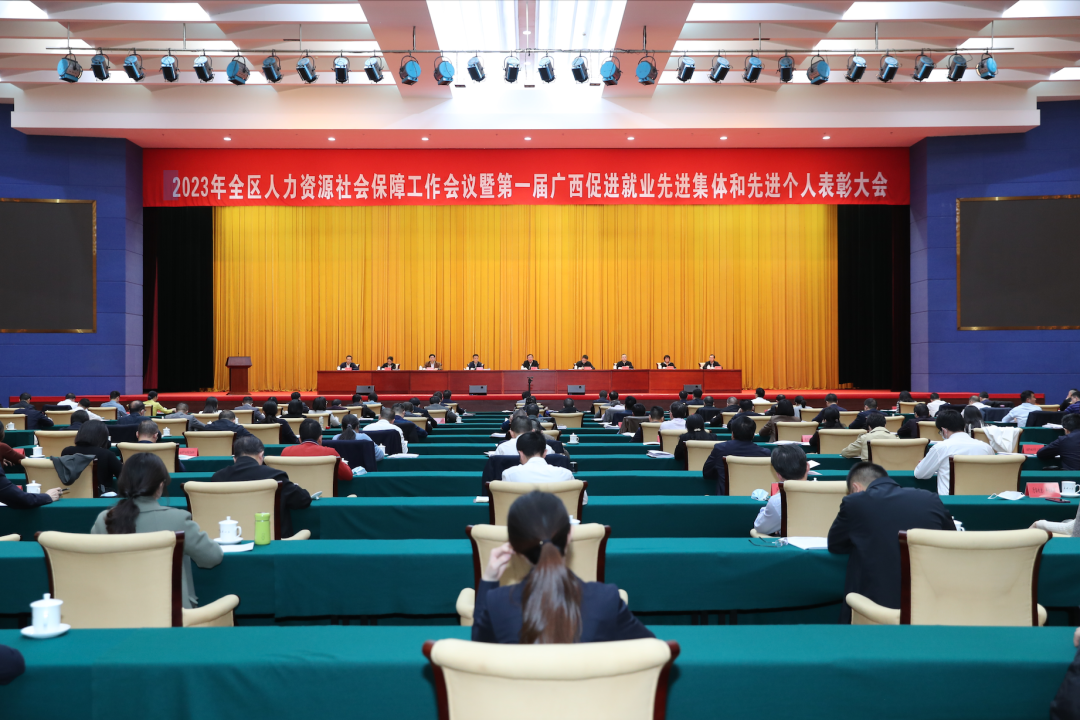 2月23日-24日,2023年全区人力资源社会保障工作会议暨第一届广西促进就业先进集体和先进个人表彰大会在南宁召开。会议的主要任务是:以习近平新时代中国特色社会主义思想为指导,全面贯彻落实党的二十大精神和中央经济工作会议及自治区党委十二届五次会议暨经济工作会议部署,贯彻落实全国人力资源社会保障工作会议暨人社系统先进集体和先进工作者表彰大会要求,全面总结2022年工作,分析研判形势,研究部署2023年重点任务,表彰先进典型,动员全区人社系统在新时代新征程上踔厉奋发、勇毅前行,奋力开创全区人社事业高质量发展新局面。自治区人力资源社会保障厅党组书记、厅长唐标文出席会议并讲话。厅党组成员、副厅长辛卫红主持会议。