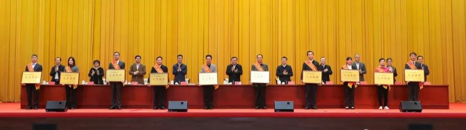 向第一届广西促进就业先进集体颁发奖牌