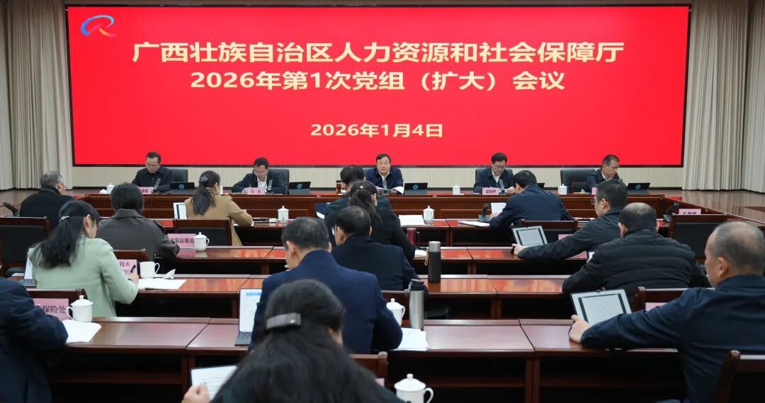 1月4日,自治区人力资源社会保障厅召开2026年第1次党组(扩大)会议,传达学习习近平总书记二〇二六年新年贺词和在中央政治局民主生活会上的重要讲话精神,全国人力资源和社会保障工作会议精神,蓝天立等案件以案促改促治工作动员部署会议,以及社会事业等领域“十五五”专项规划座谈会精神,研究贯彻落实措施。厅党组书记、厅长唐标文主持会议并讲话。
