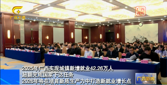 【视频】2025年广西实现城镇新增就业42.26万人 超额完成国家下达任务 2026年将在培育新质生产力中打造新就业...