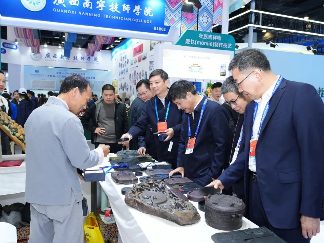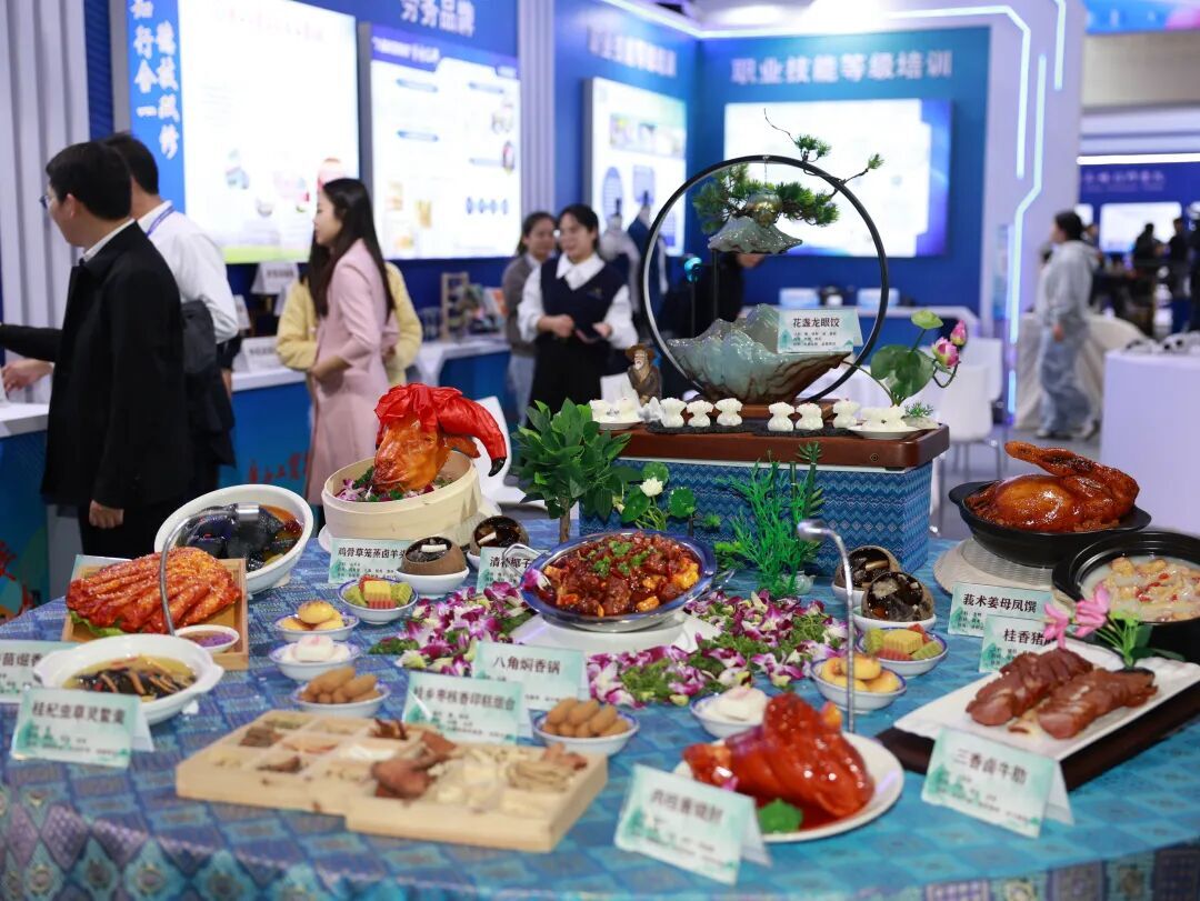 在技能成果展区,工业机器人完成复杂指令,新能源汽车关键部件展示技术突破,智能制造产线流畅运转,3C电子装备实现智能升级,一系列来自广西高技能领军人才、技能大师工作室的创新创业成果,以实物、动态演示与视频相结合的方式,生动诠释了“技能照亮前程,奋斗成就梦想”的时代内涵。广西14个设区市也携各自技能建设的“城市名片”集中亮相,全面展示全区技能人才的多元发展与地域特色。