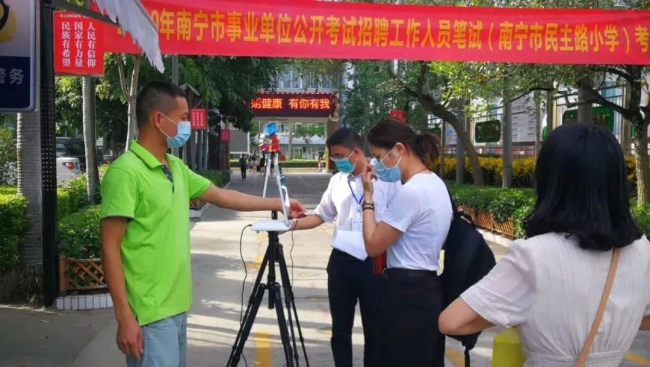 今年因受疫情影响,广西严格落实“三到位”举措,确保考试各项工作安全运行。一是落实责任到位。加强组织领导,统一要求各市成立专门的考试工作领导小组,加强考务工作的组织领导,制定详细的笔试工作方案和防控应急处置预案,明确岗位职责、操作规范和应急处理流程,进一步强化责任意识、纪律意识和保密意识,按照职责分工层层压实责任,确保各项责任落实到位。二是落实防疫措施到位。实行疫情防控属地化管理,要求各市提前14天便发布了考试疫情防控注意事项公告,考点设置临时隔离检查点和应急隔离考场,考场进行全面消杀并备足防疫防护物品,考场入口设置多通道体温检测点,在测量体温,核验广西健康码、准考证和身份证后,有序引导考生入场,考生在考试期间全程佩戴口罩。三是落实联防联控机制到位。要求各市人力资源社会保障局、教育局、卫生健康委等部门联动发力,切实做好考试场地安排、疫情防控、突发事件防范和处置等相关保障工作,为考生营造风清气正、公平公正、安全有序、温馨和谐的考试环境,确保本次考试安全平稳、井然有序、顺利进行。