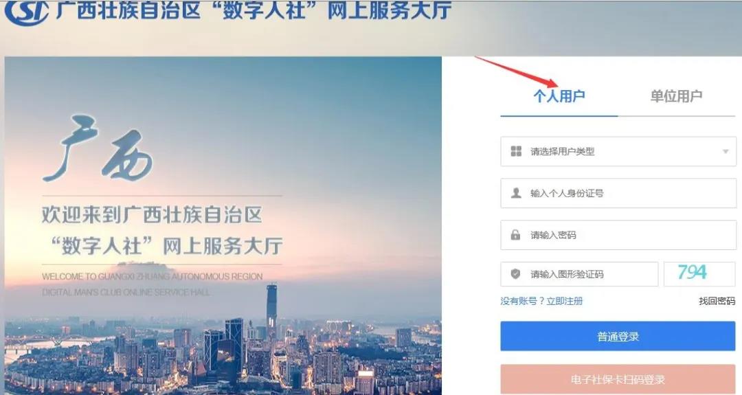 第一步:个人通过身份证号、密码进行登录。首次登录系统需要先注册。