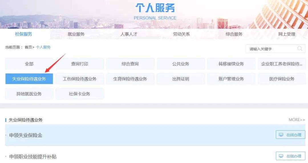 第四步:点击“失业保险待遇业务”
