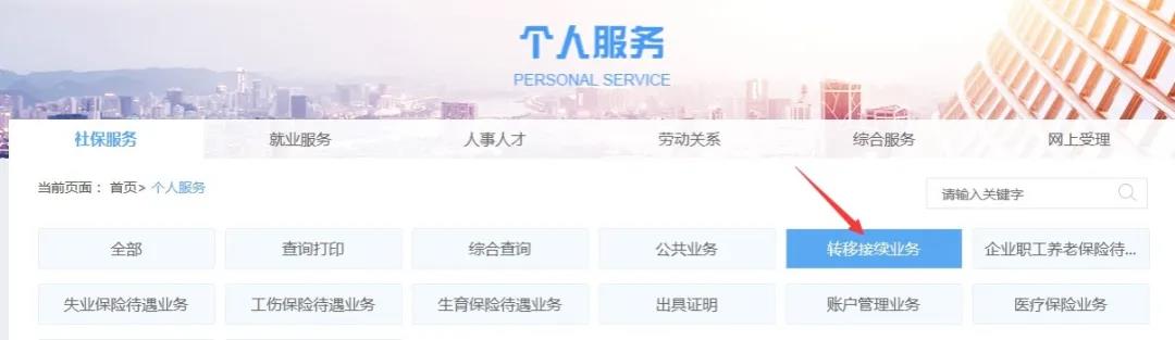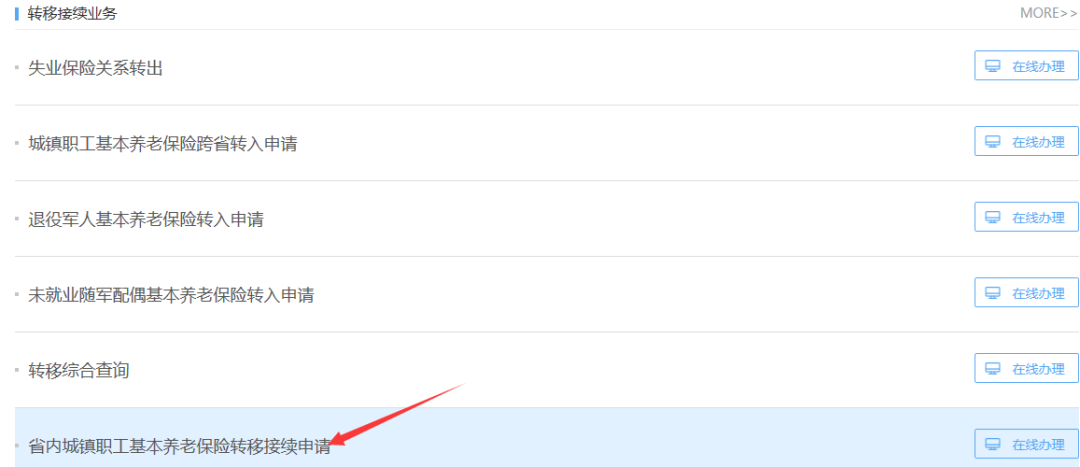 第五步:点击“省内城镇职工基本养老保险转移接续申请”