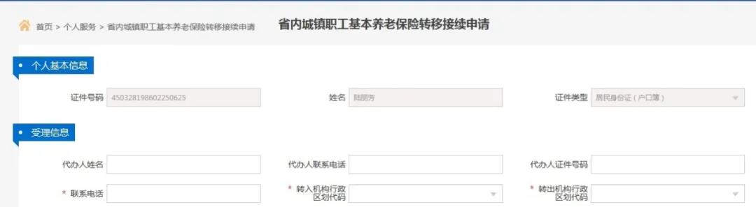 用于个人申请在自治区内转移城镇职工基本养老保险关系。