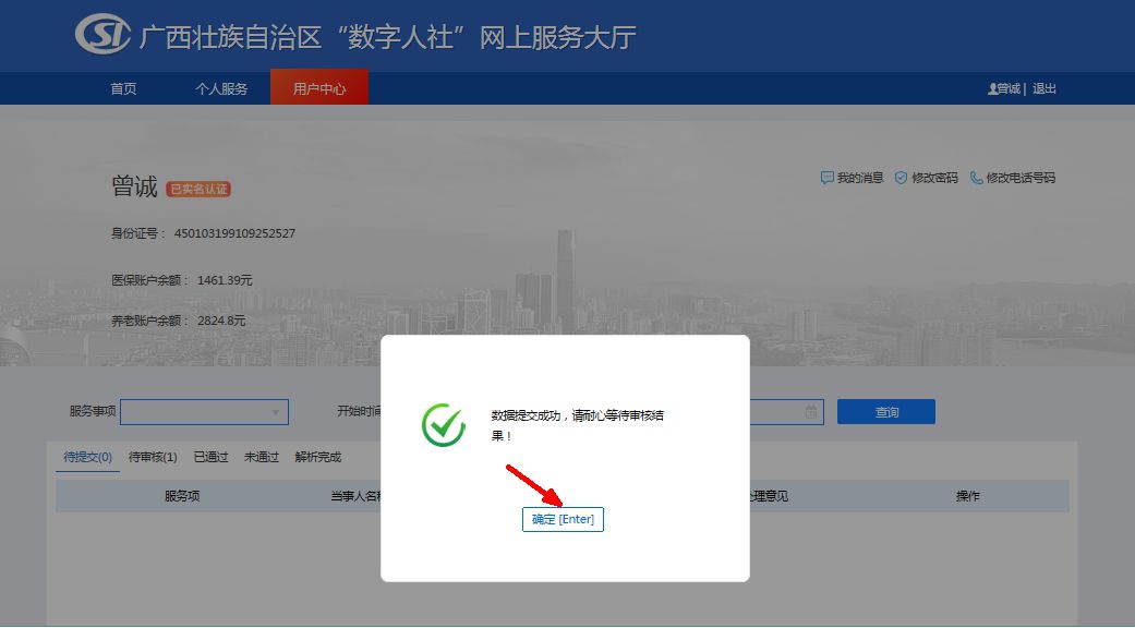 1.男满58周岁、女满48周岁才能提出转移申请(根据桂社保函【2019】37号文件规定),否则系统会提示: