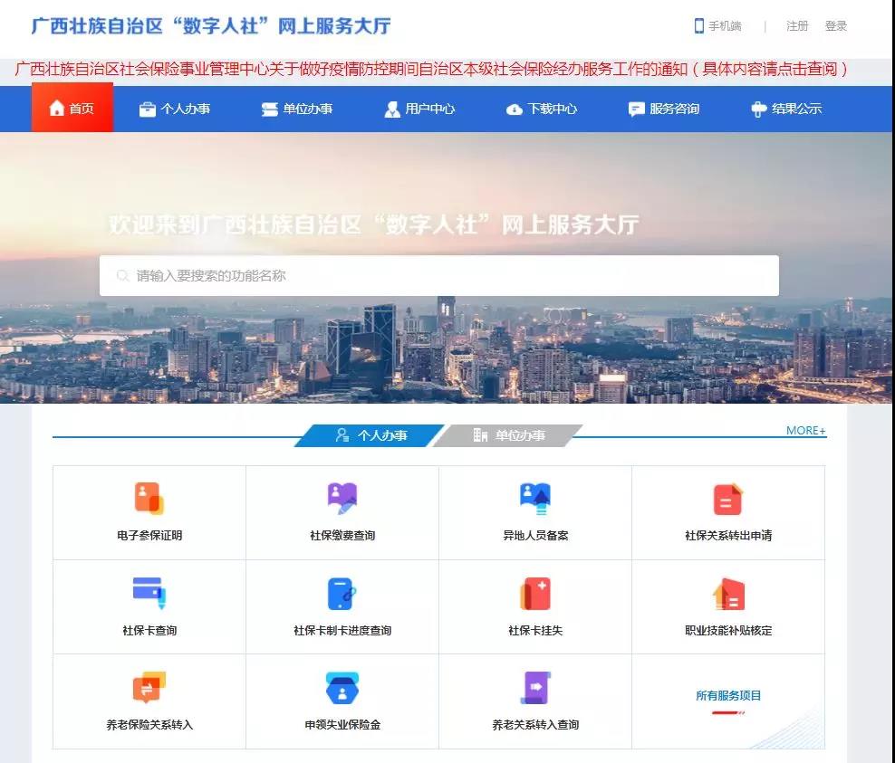 广西“数字人社”网上服务大厅